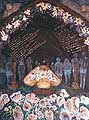 at the End". A bed of flowers and a garlanded archway frames her reclining